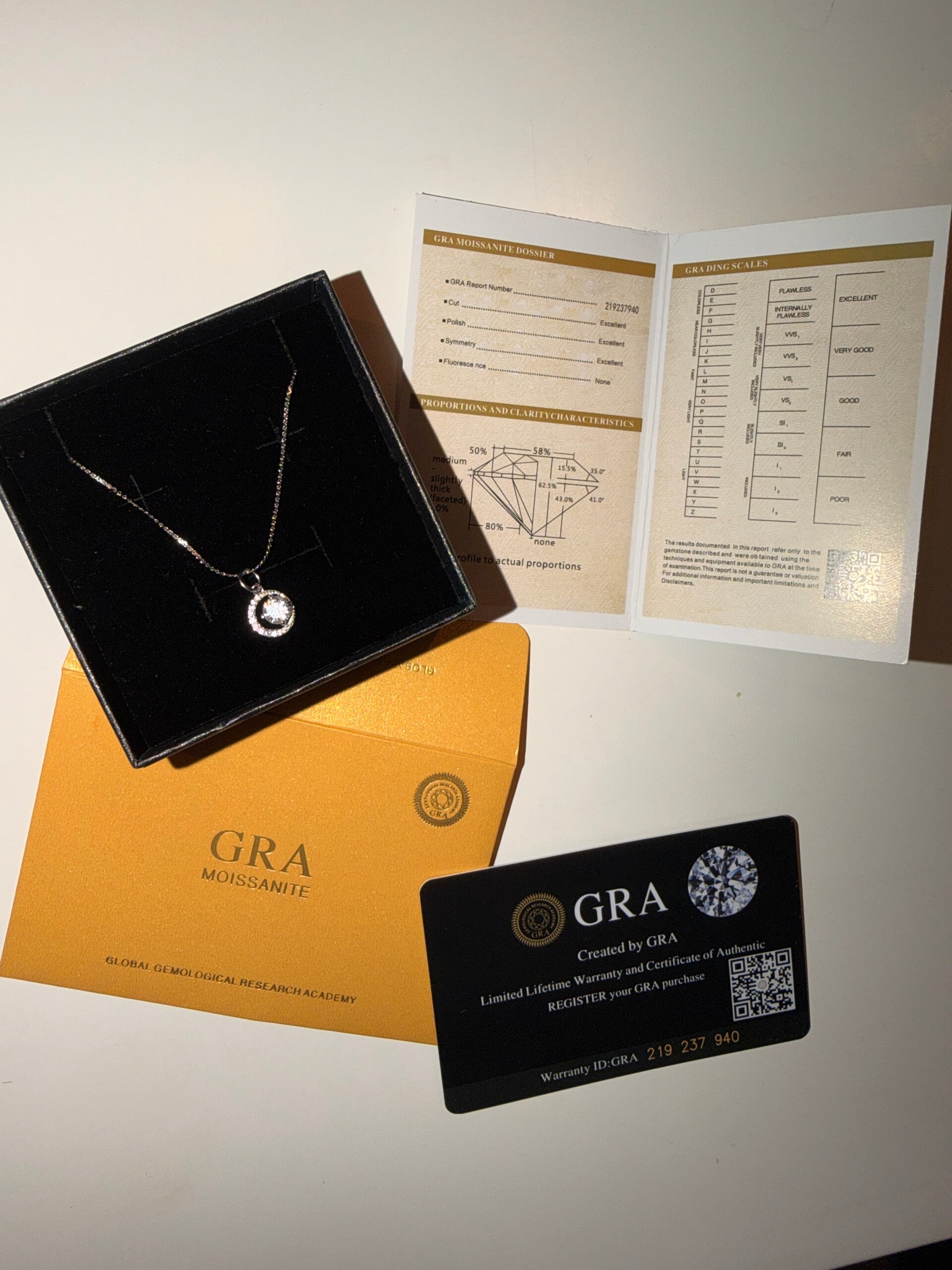 0,5 ct Moissanite halskjede som er VVS1, brilliant cut. Det følger GRA. Halskjeden er S925
