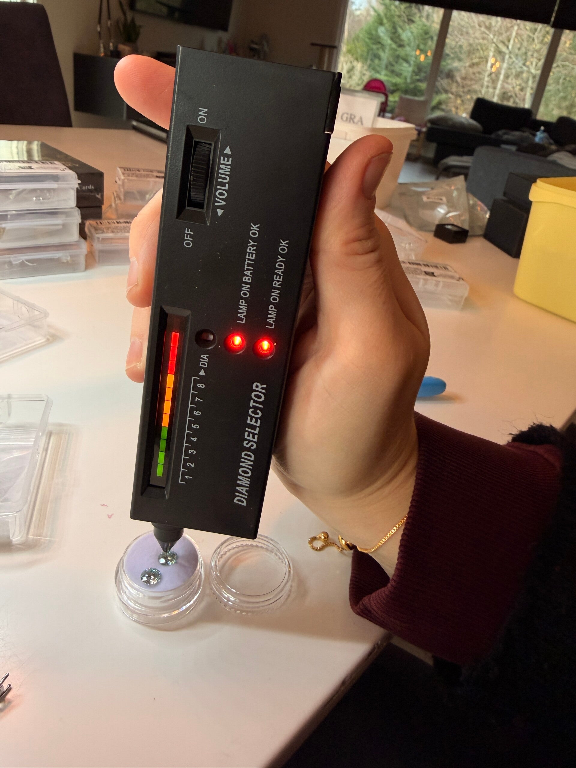 2 ct øredobber (1 ct hver for seg). De er lys blå, tounge brilliant, VVS1, excellent cut og 6,5mm hver for seg. Det medfølger GRA sertifikat. Øredobber er S925