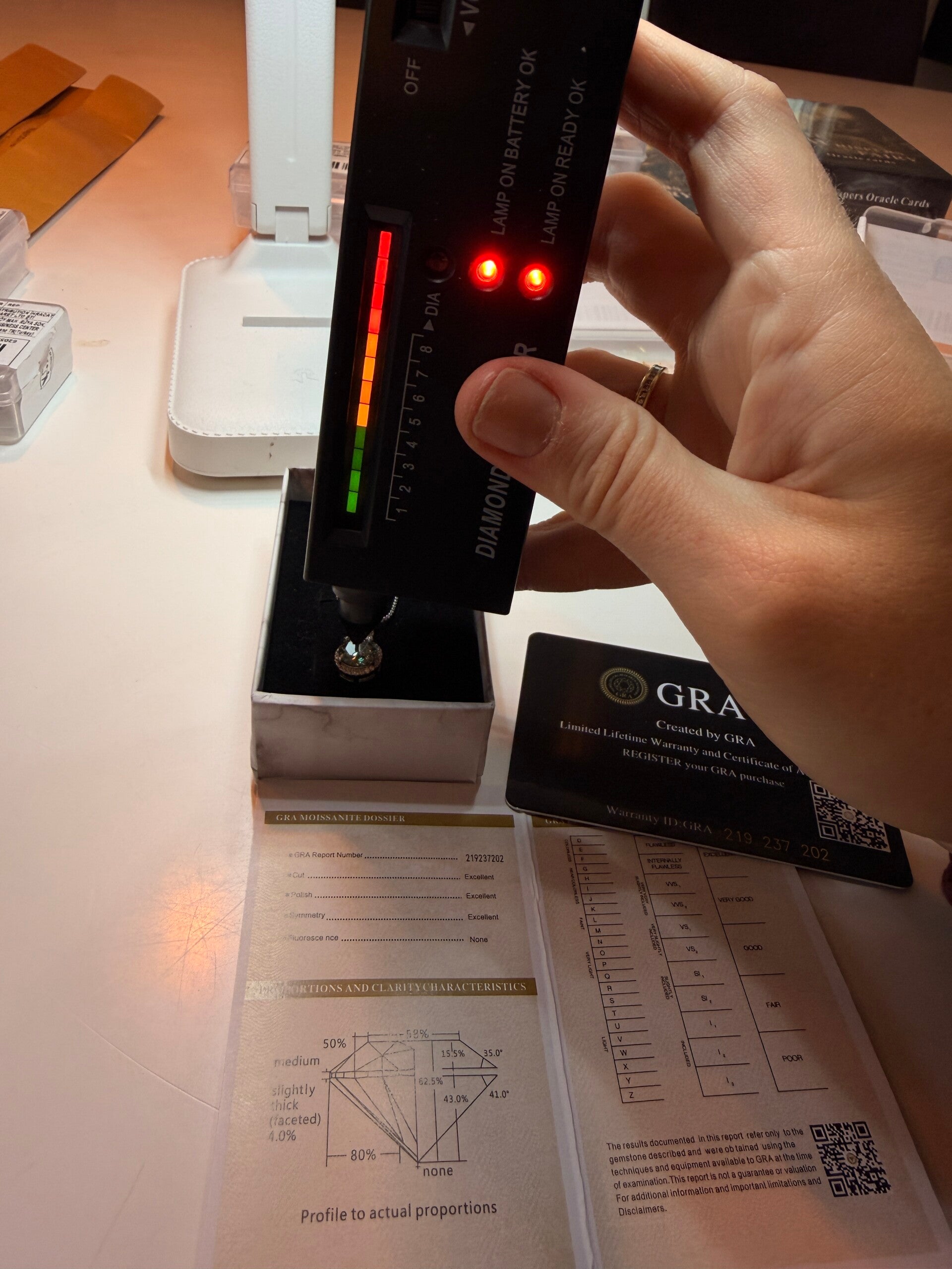 2 ct (8mm) grønn Moissanite halskjede S925. Det medfølger GRA sertifikat.