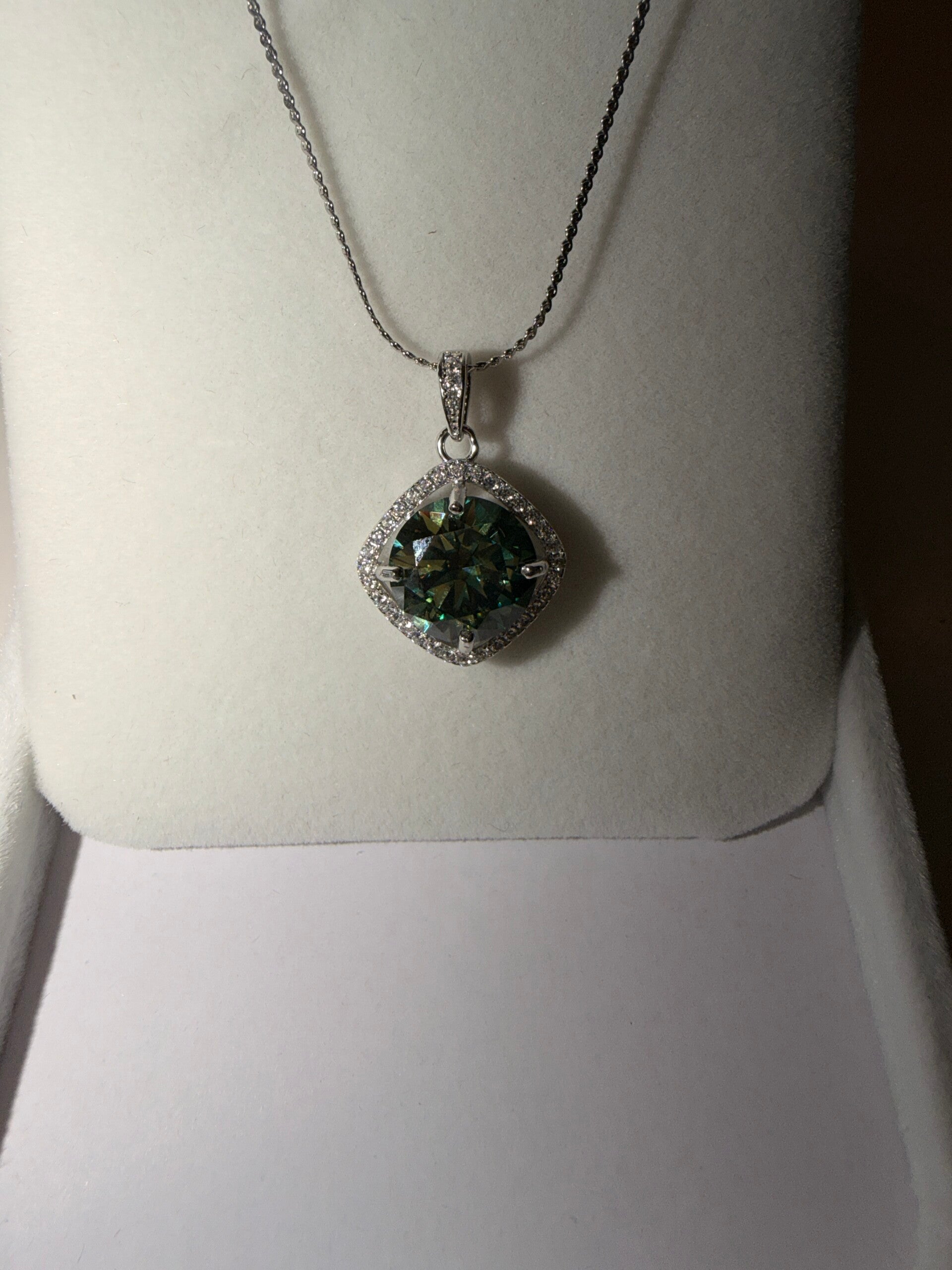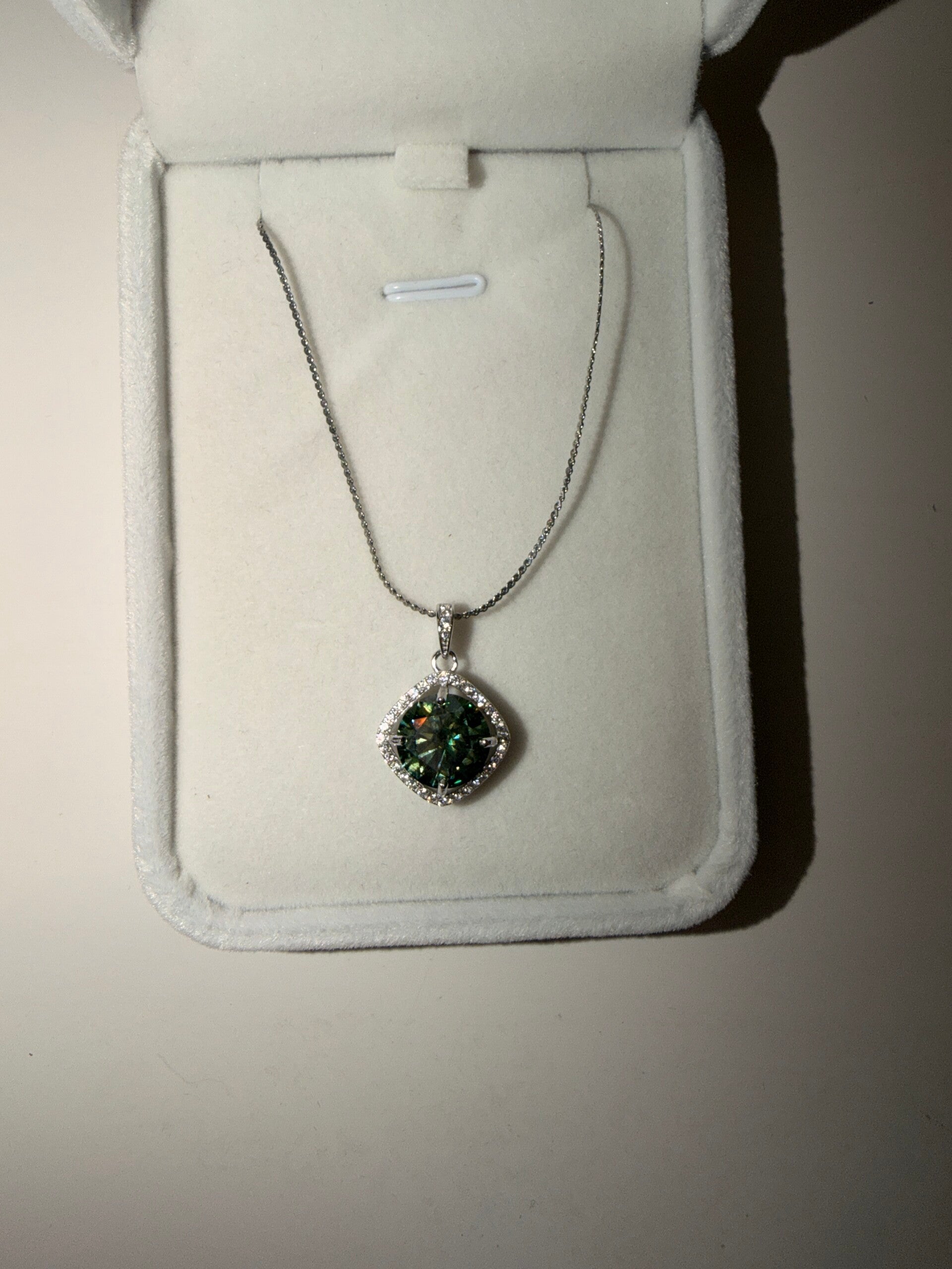 4 ct grønn/blå Moissanite halskjede som er S925. Det følger ikke med sertifikat.