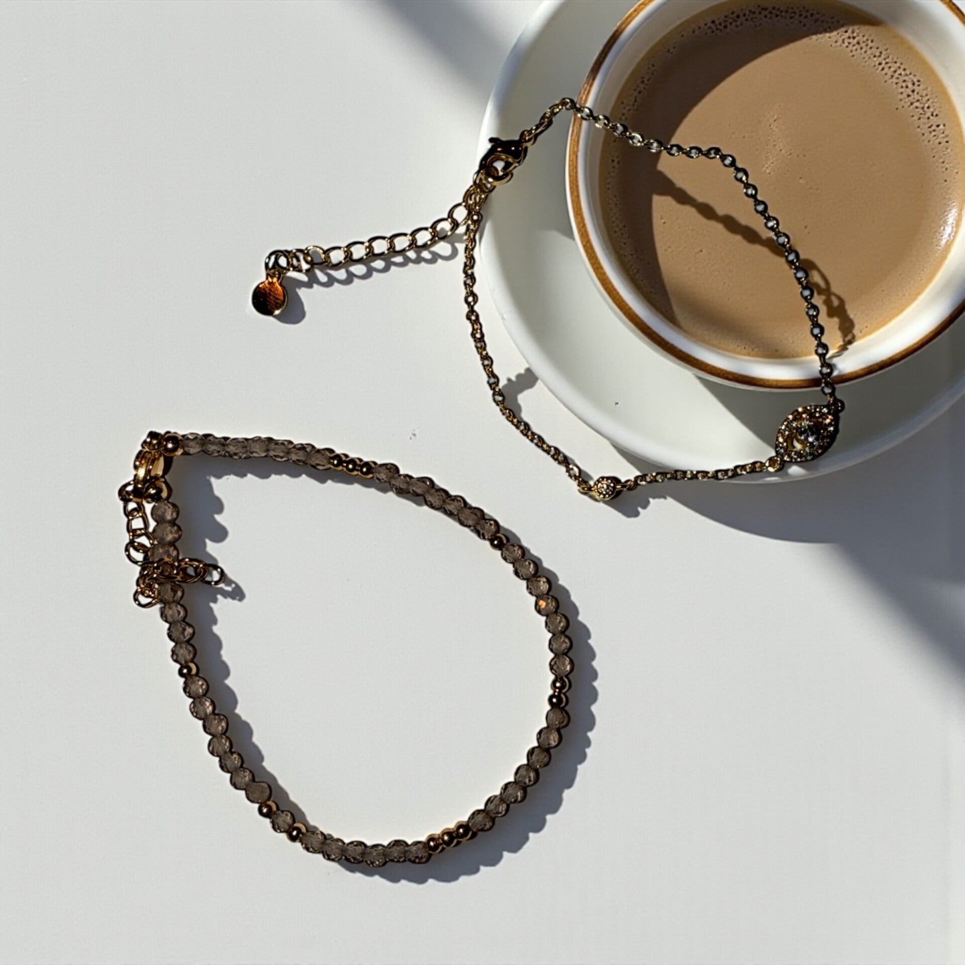 Røykkvarts og evil eye armbånd
