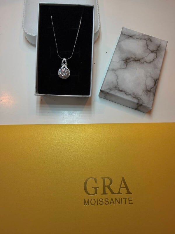 2 ct Moissanite halskjede i farge D, VVS1, round brilliant. Steinen er 8mm. Smykket er S925 sølv. Det følger GRA sertifikat med.