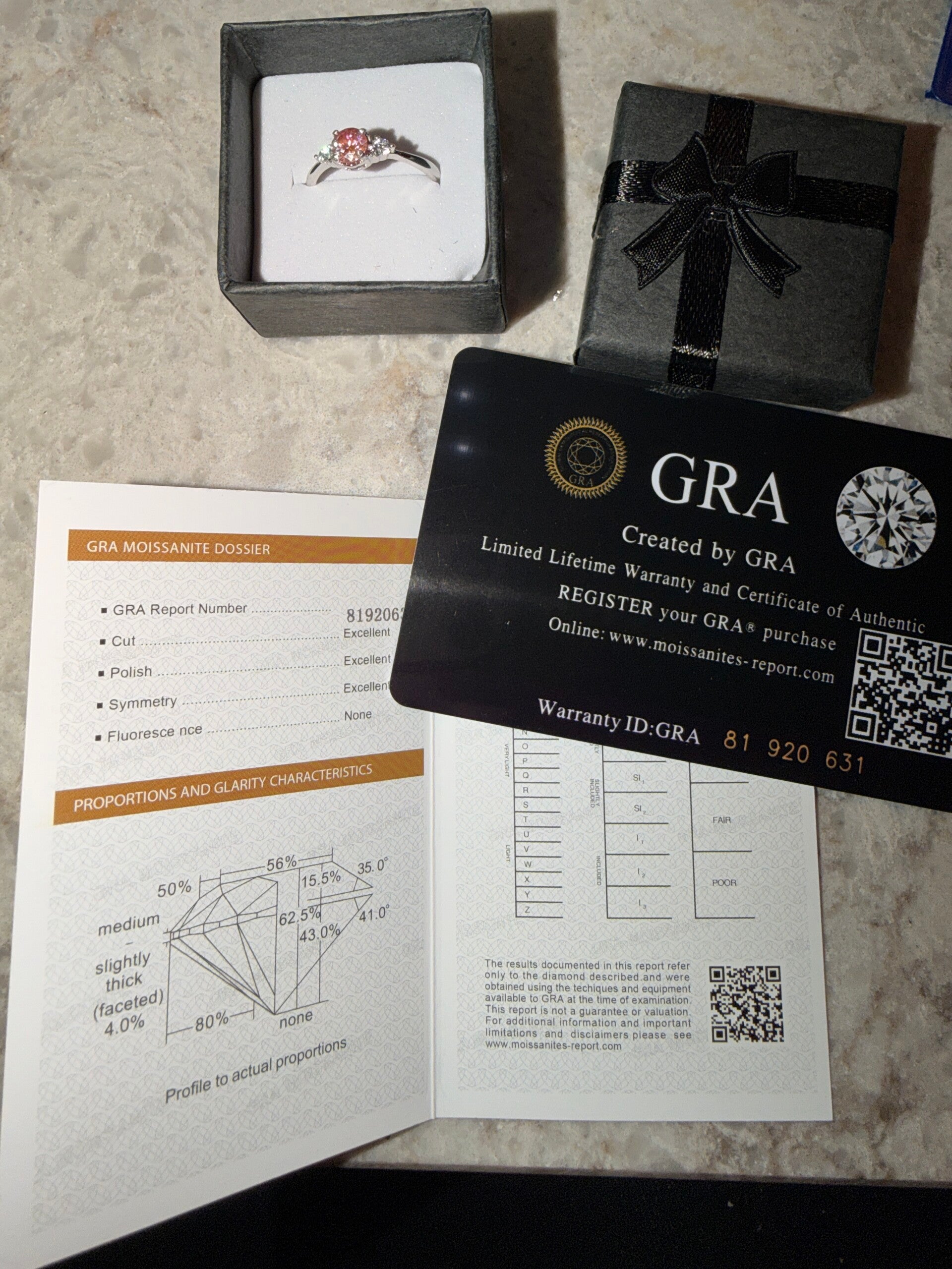 0,5 ct Moissanite ring som er justerbar i størrelsen. Ringen er S925 sølv. Moissanite steinen er 5mm, pink/rosa, VVS1, round brilliant og excellent cut. Sertifikat medfølger.